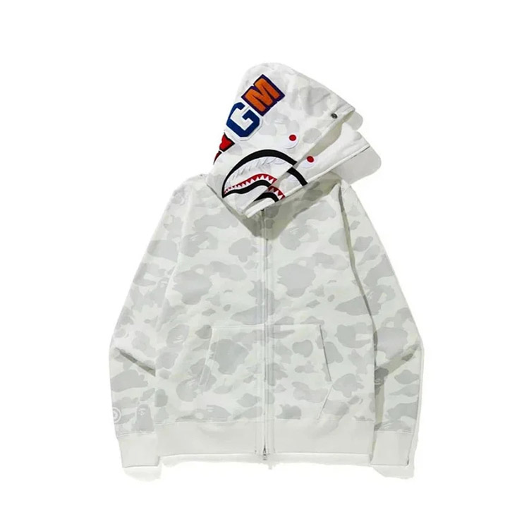 BAPE colorblock fluorescent shark series hooded pullover sweatshirt jacket-4244