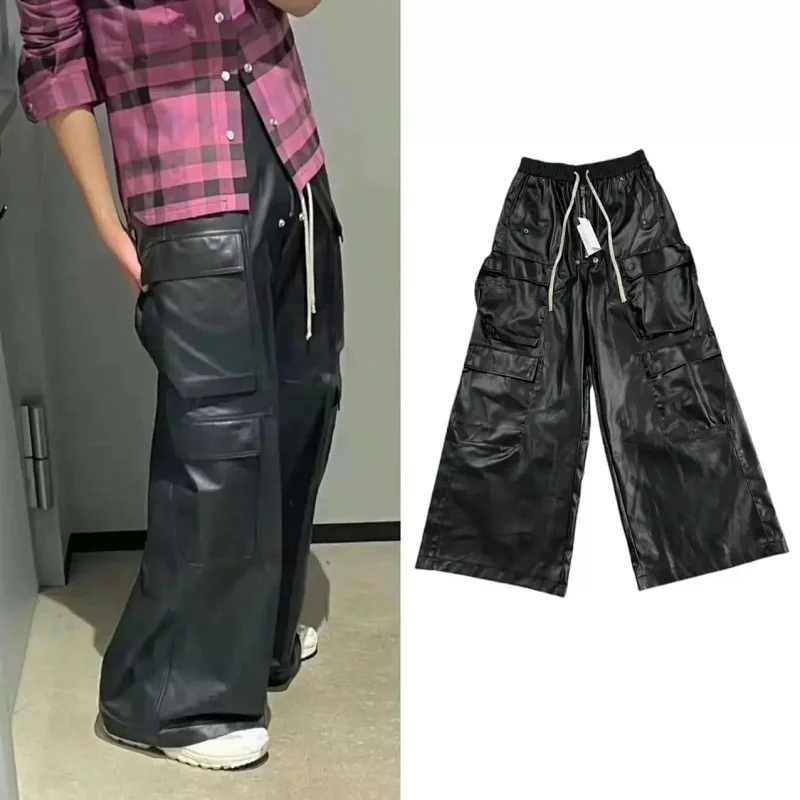 Home > Rick Owens vintage high-end multi-pocket loose shiny leather pants-2461